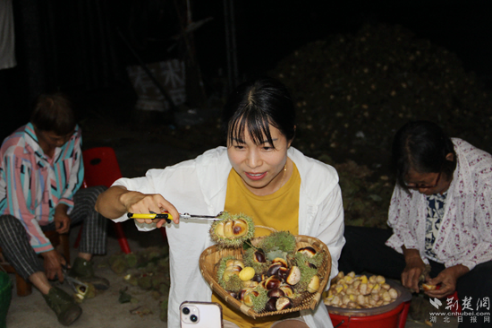 忙碌的夏夜,栗農(nóng)運板栗。通訊員 供圖
