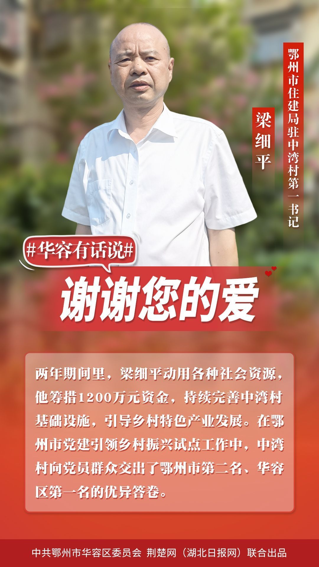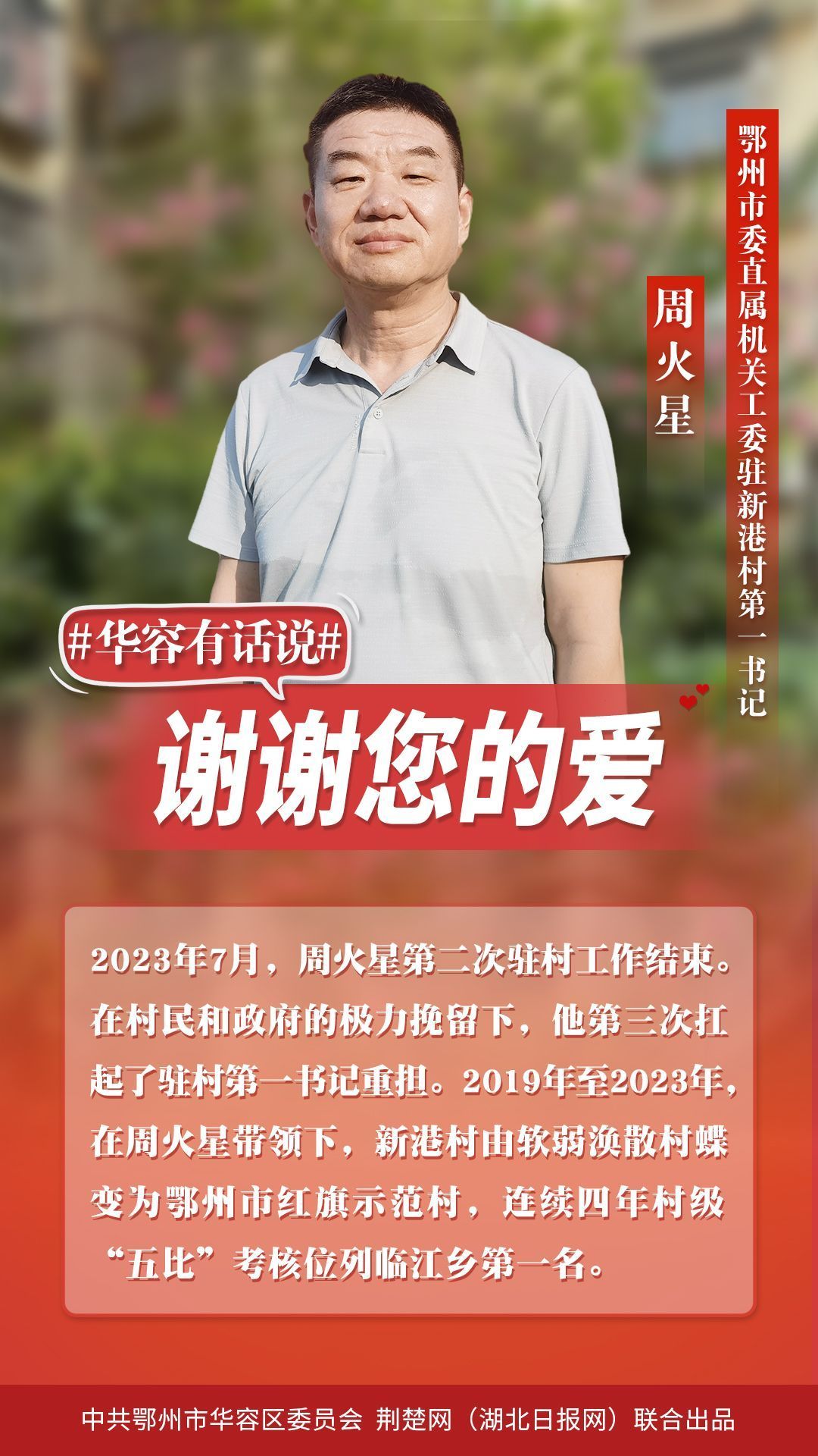 華容無所有,聊贈一顆心。千恩萬謝,訴不盡離別衷腸;千言萬語,道不盡感激之情。20多萬華容百姓捎來心里話:“繼續(xù)駐村同志,攜手并肩前行;駐村結(jié)束返崗同志,?;丶铱纯?,華容是您的第二故鄉(xiāng),是您永遠的家!”