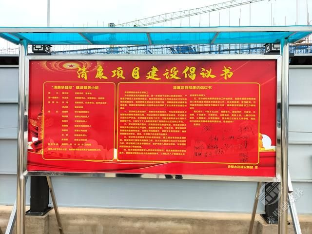 赤壁中試谷·智能無人系統(tǒng)測(cè)試基地赤壁市水建集團(tuán)項(xiàng)目部前的清廉項(xiàng)目建設(shè)倡議書的簽名板上,密密麻麻地簽滿了名字。一個(gè)簽名就是一份承諾,一個(gè)簽名就是一份責(zé)任,一個(gè)簽名就是水建集團(tuán)建設(shè)清廉國企的堅(jiān)實(shí)基礎(chǔ)。