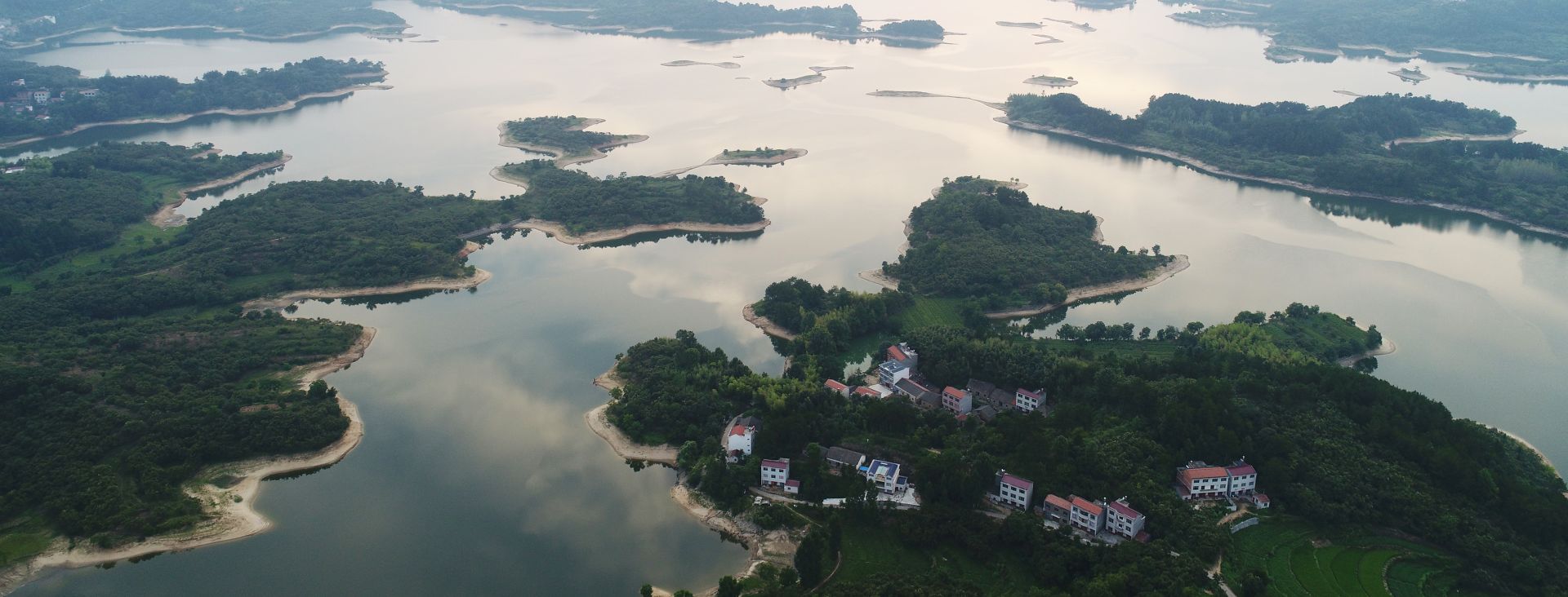 明山水庫(kù),煙波浩渺,蜿蜒曲折,其狀如龍,栩栩如生,群山環(huán)抱,風(fēng)景秀麗。