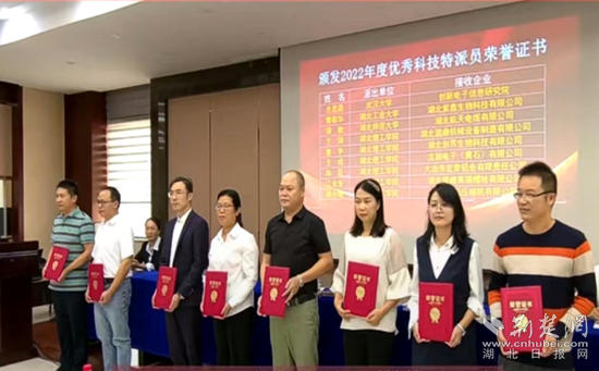 活動現(xiàn)場,9名黃石市2022年度優(yōu)秀“企業(yè)科技特派員”站上領(lǐng)獎臺。其中,湖北理工學(xué)院優(yōu)秀“企業(yè)科技特派員”占了三分之二。