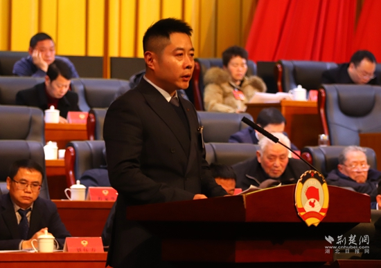 咸安區(qū)政協(xié)副主席雷春作提案工作報(bào)告。黃錚 攝