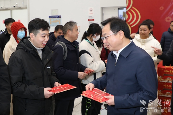 “感謝大家一年來為鄂州發(fā)展作出的貢獻,這次通過免費送建設(shè)者返鄉(xiāng)等多種舉措,希望能讓大家感受到鄂州這座城市的溫度?!痹跈C場航站樓一樓大廳,湖北省總工會領(lǐng)導(dǎo)及鄂州市領(lǐng)導(dǎo)向外來務(wù)工人員代表贈送裝有鄂州特產(chǎn)的年貨禮包,并致以誠摯美好的新春祝福。