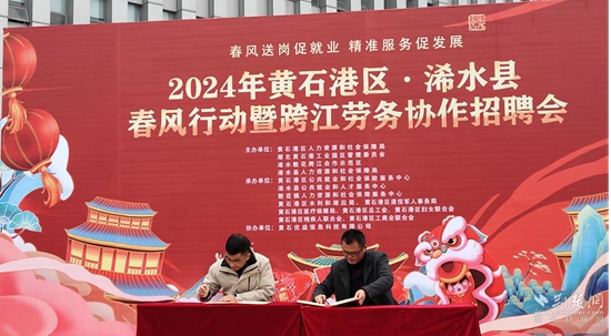在活動中,兩地人社部門相關負責人現(xiàn)場簽訂勞務合作協(xié)議,雙方將充分發(fā)揮各自優(yōu)勢,共同就招聘信息發(fā)布、勞動力輸送、培訓資源共享、校企合作、勞務糾紛維權、穩(wěn)崗監(jiān)測等方面進行合作雙贏,共同推動實現(xiàn)浠水、黃石港區(qū)兩地的優(yōu)勢互補、資源共享、互惠共贏、協(xié)同發(fā)展。