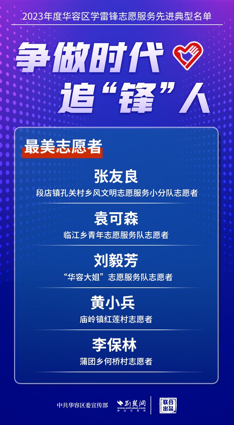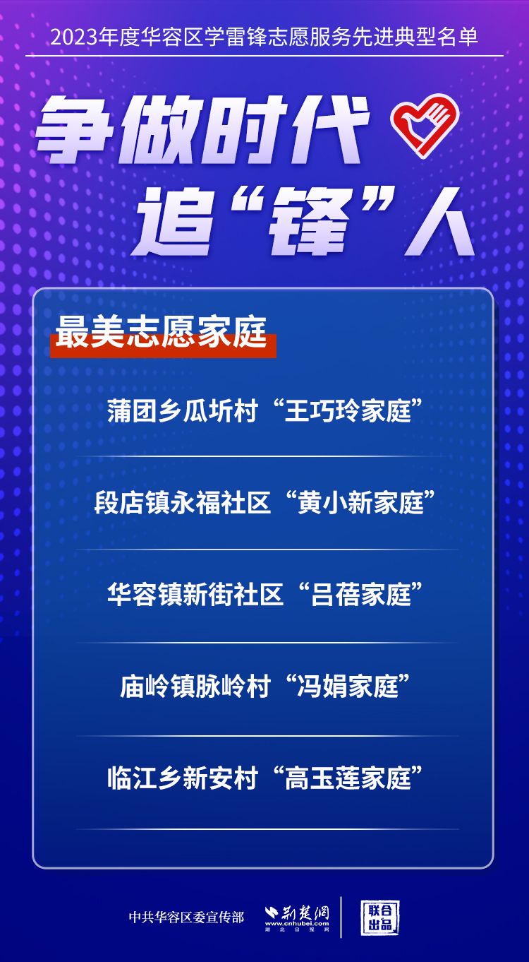 荊楚網(wǎng)(湖北日報網(wǎng))訊(記者王焱堯 通訊員劉佳源)最美志愿者、最佳志愿服務(wù)組織、最佳志愿服務(wù)項目、最美志愿家庭……3月5日,武漢新城展示中心,鄂州市華容區(qū)公布2023年度學(xué)雷鋒志愿服務(wù)先進典型名單。