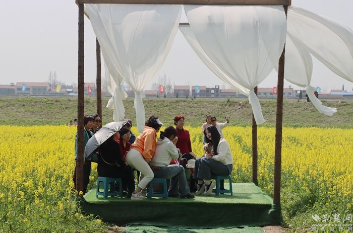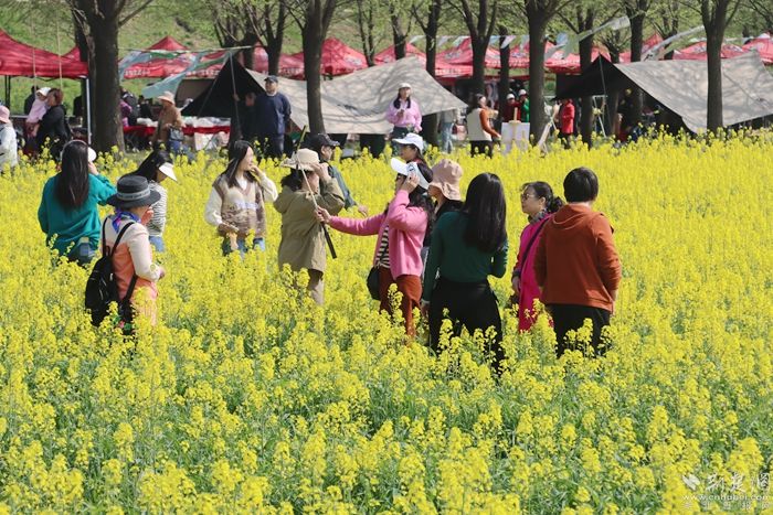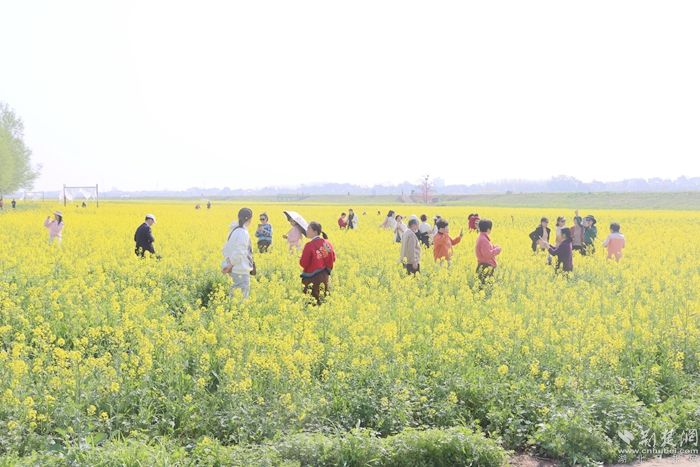 黃澄澄的油菜花田如金色海洋般廣袤無(wú)垠,春風(fēng)拂過(guò),花浪起伏,散發(fā)出令人陶醉的清新香氣。游客們紛紛踏入這片花海,感受春天的氣息,品味鄉(xiāng)土的韻味。