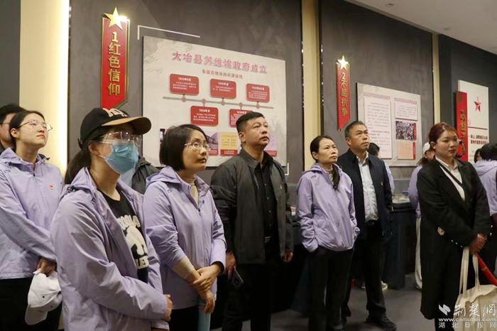 在殷祖南山頭革命紀(jì)念館廣場,大家重溫入黨誓詞;在南山頭革命紀(jì)念碑前,大家默哀鞠躬、敬獻花籃,緬懷革命先烈;在鄂東南紅色紀(jì)念館,大家認(rèn)真聆聽紅色故事、看先烈艱苦卓絕的足跡,緬懷他們的豐功偉績;在江南農(nóng)耕文化展覽館感嘆幸福生活來之不易;在沼山村感受美好環(huán)境與幸福生活的共同締造。