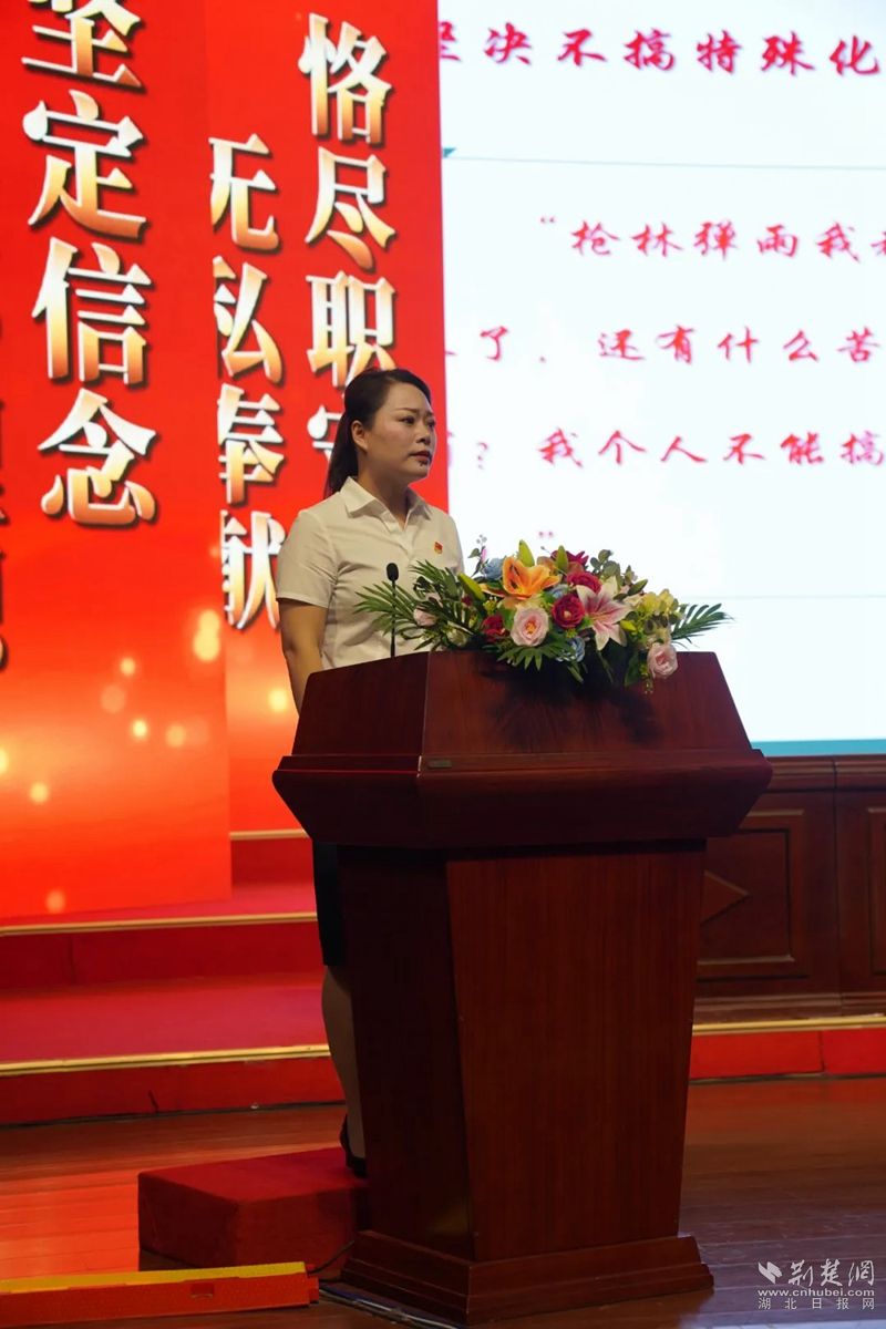 鄂城區(qū)退役軍人、荊楚楷模最美退役軍人、西山街道工作人員石筆宣講。