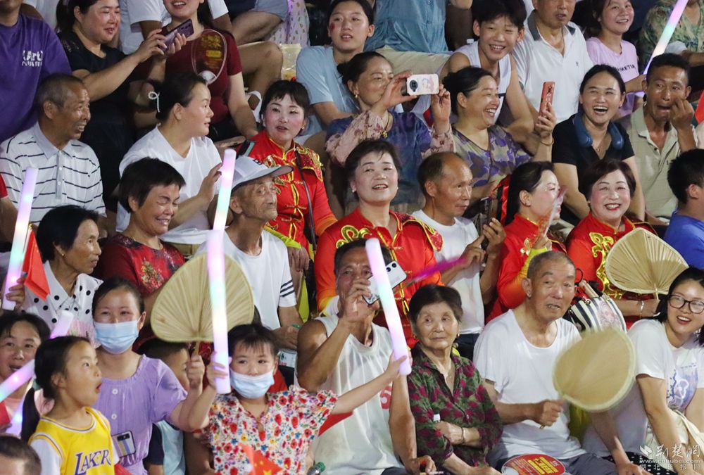 華燈初上,匡河小學(xué)籃球場熱鬧非凡,驕陽似火,酷暑難耐,但是依然擋不住球迷們的熱情,村民們揮舞著國旗,加油聲、喝彩聲一浪高過一浪,享受著體育競技活動(dòng)帶來的樂趣。