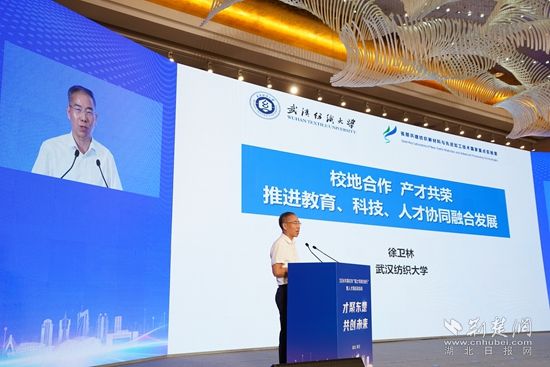 活動現(xiàn)場,中國工程院院士、武漢紡織大學黨委副書記、校長徐衛(wèi)林以《校地合作產(chǎn)才共榮,推進教育、科技、人才協(xié)同融合發(fā)展》為題發(fā)表主旨演講。他表示,科技成果難轉(zhuǎn)化,是因高校老師們一線來少了,專利是在實驗室想出來的。今天黃石搭建了平臺,讓老師走進企業(yè),出去就有了目標,專利有了意義,創(chuàng)新也有了針對性。