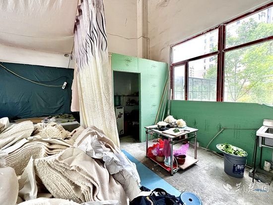 不僅如此,在大約50平方米的空間里,混亂擺放著十幾臺(tái)服裝加工機(jī)器,加工設(shè)備旁還放置著燃?xì)庠睢N具等一應(yīng)俱全的做飯工具,且未進(jìn)行有效防火分隔。用來(lái)“保命”的室內(nèi)消防栓,也被用作置物臺(tái)放置各種雜物。
