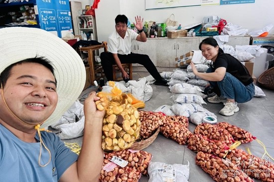 羅田縣網絡直播協(xié)會每天收購、銷售板栗,在各鄉(xiāng)鎮(zhèn)板栗公園定期組織現場直播打板栗、剝板栗,助力板栗走向廣闊市場,目前通過直播銷售板栗150噸,銷售額300萬元,帶動全縣農民增收致富。