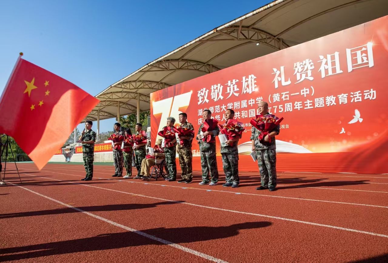 9月29日上午,國慶節(jié)臨近,“致敬英雄 禮贊祖國”——湖北師范大學(xué)附屬中學(xué)(黃石一中)慶祝中華人民共和國成立75周年活動舉行?;顒油ㄟ^走一次紅地毯、唱一首主題歌、獻(xiàn)一束手捧花、送一本報道集等形式,致敬為共和國無私奉獻(xiàn)的英雄們。