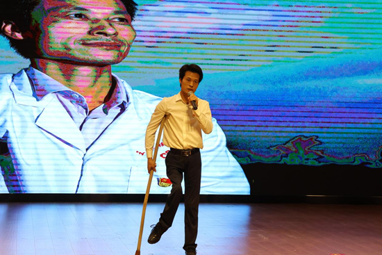 杜詠梅的《牽手》,講述了一位教師與一名自閉癥兒童的故事?!拔釃f疆以仁愛,千年不滅的信仰......”現(xiàn)場觀眾應節(jié)合拍,氣氛達到了高潮。