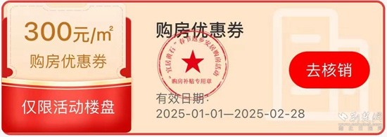 值得注意的是,此次專場(chǎng)活動(dòng)的“購(gòu)房?jī)?yōu)惠券”僅限在參與本次專場(chǎng)“大優(yōu)惠”活動(dòng)的房地產(chǎn)項(xiàng)目房源中使用,不能同時(shí)參與“一口價(jià)”優(yōu)惠活動(dòng)?!百?gòu)房?jī)?yōu)惠券”僅限在2025年1月1日至2月28日期間使用,逾期未使用則自動(dòng)失效。