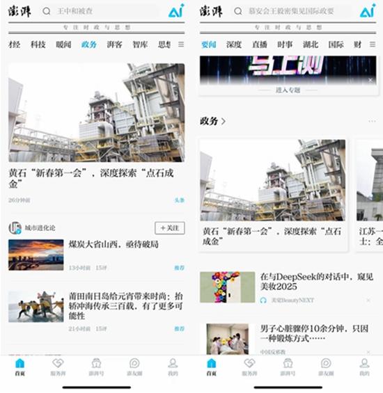 澎湃新聞客戶端首頁、政務頭條推薦,荊楚網(wǎng)首頁要聞推介展示,“黃石發(fā)布”官方微信頭條推送……
