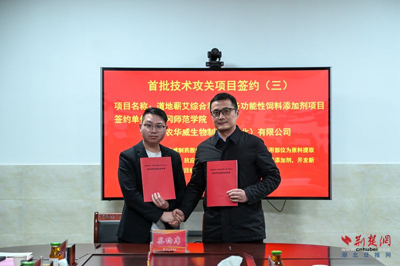 揭牌儀式上,活動(dòng)現(xiàn)場,黃岡師范學(xué)院黨委副書記、校長漆昌柱和黃岡市科技局黨組書記姜寬分別為省級重點(diǎn)實(shí)驗(yàn)室學(xué)術(shù)委員會專家頒發(fā)聘書。重點(diǎn)實(shí)驗(yàn)室分別與湖北衛(wèi)爾康現(xiàn)代中藥有限公司、農(nóng)華威生物制藥(湖北)有限公司等6家企業(yè)簽訂產(chǎn)業(yè)關(guān)鍵技術(shù)攻關(guān)項(xiàng)目協(xié)議。項(xiàng)目涵蓋道地藥材多個(gè)研究與開發(fā)領(lǐng)域的技術(shù)攻關(guān),總項(xiàng)目經(jīng)費(fèi)達(dá)370萬元。