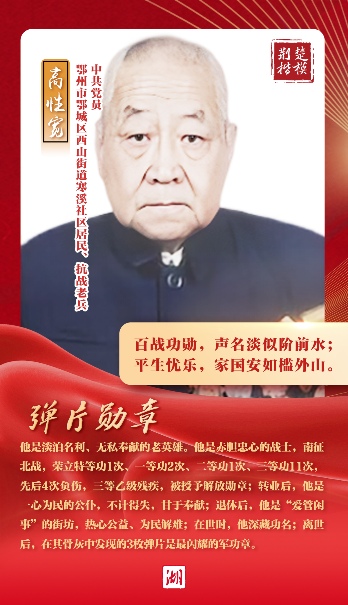 高性寬,男,漢族,1931年4月出生,河南省博愛縣人,2024年4月28日,在湖北省鄂州市鄂城區(qū)去世。省楹聯(lián)學(xué)會這樣講述他:百戰(zhàn)功勛,聲名淡似階前水;平生憂樂,家國安如檻外山。橫批:彈片勛章。