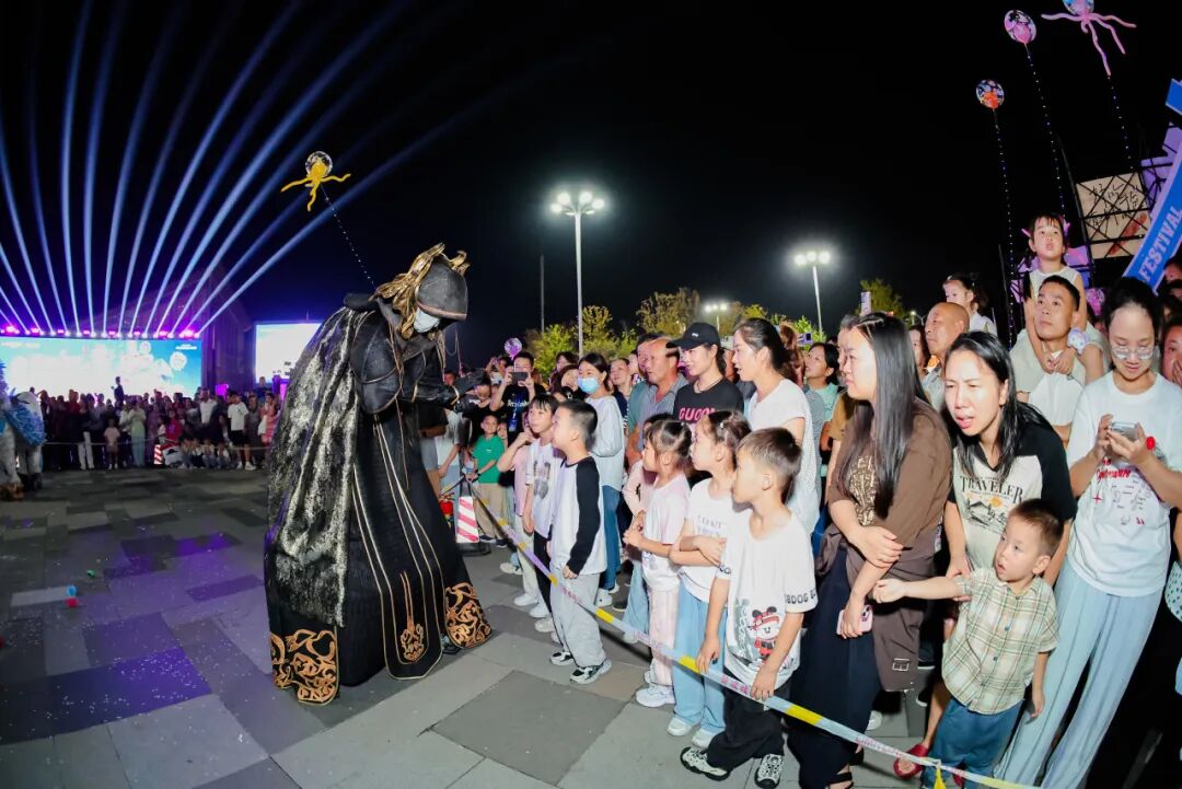 伴隨著開場(chǎng)音樂(lè),高2.4米的白袍巫師哈瑞、黑袍巫師、精靈法師瑞秋等角色踩著高蹺驚艷登場(chǎng),只見(jiàn)黑袍巫師從袖中掏出匕首,轉(zhuǎn)瞬間匕首燃起火焰,魔法師們與觀眾互動(dòng)握手,把彩帶撒向人群,將現(xiàn)場(chǎng)氣氛推向高潮。10月1日,黃陂區(qū)甘露山文創(chuàng)城國(guó)際街頭藝術(shù)節(jié)正式開幕,吸引近5萬(wàn)名游客前來(lái)打卡。