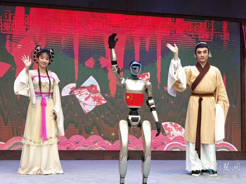 荊楚網(wǎng)(湖北日?qǐng)?bào)網(wǎng))訊(通訊員王晶、費(fèi)留燦)國(guó)慶中秋假期,在黃梅縣東山問(wèn)梅村,當(dāng)黃梅戲《女駙馬》的經(jīng)典唱段響起,機(jī)器人踩著婉轉(zhuǎn)唱腔靈活擺臂、轉(zhuǎn)身,復(fù)刻戲曲身段的韻味;戲腔未落,身著傳統(tǒng)獅頭裝扮的機(jī)器狗躍至臺(tái)前,跟著鼓點(diǎn)騰躍撲閃,鬃毛翻飛間盡顯靈動(dòng),引得游客紛紛舉手機(jī)拍攝,鏡頭緊追這些“特殊演員”。