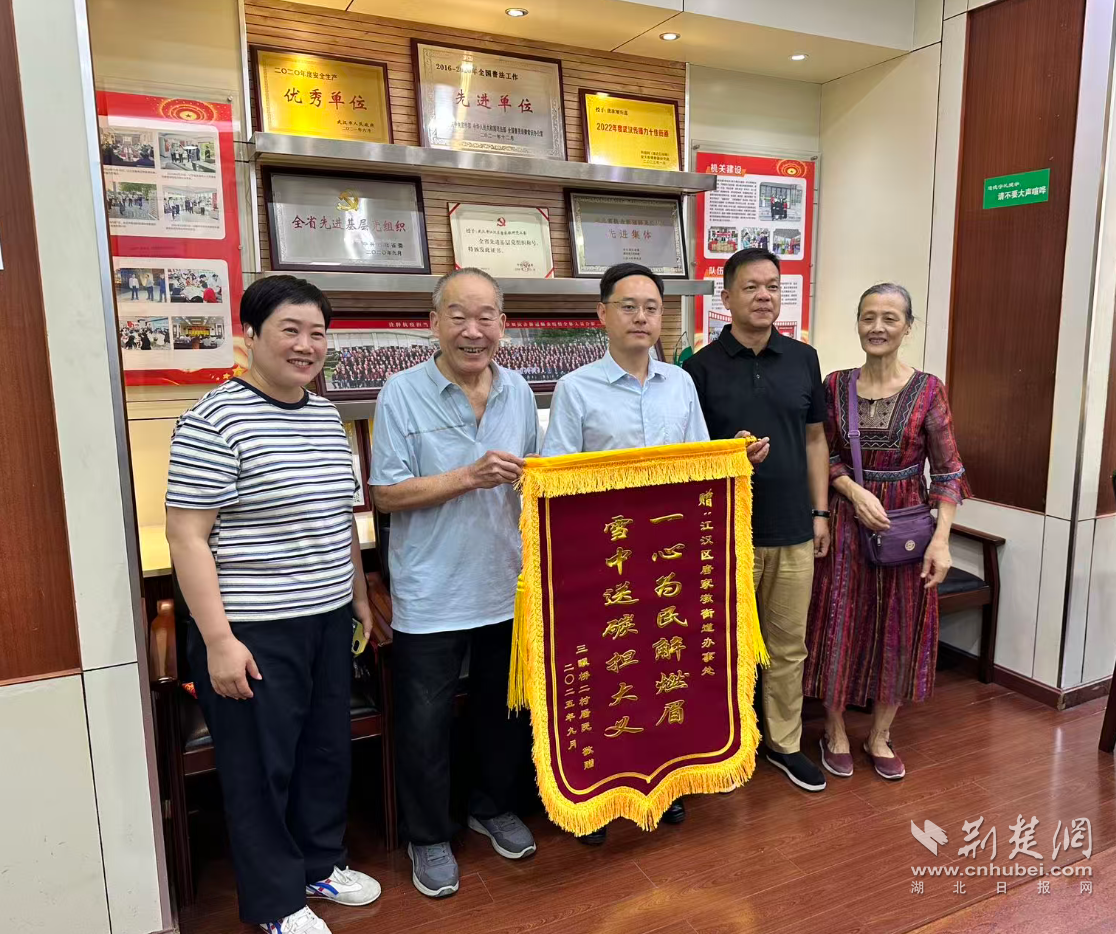 10月10日上午,武漢三眼橋二村52-54號的居民代表手捧一面寫有“一心為民解燃眉,雪中送炭擔(dān)大義”的錦旗,走進(jìn)江漢區(qū)唐家墩街道辦事處,用最樸實(shí)的方式表達(dá)他們的感激之情。