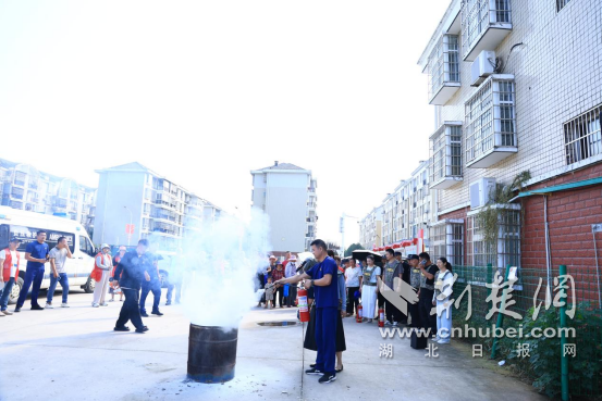 廣場(chǎng)一側(cè),先由湘口街道專職消防隊(duì)帶來(lái)一場(chǎng)沉浸式防災(zāi)減災(zāi)知識(shí)課。消防隊(duì)員就滅火器的性能、用途、使用方法、設(shè)備維護(hù)等基本知識(shí)進(jìn)行講解,對(duì)如何正確使用消防栓、鋪設(shè)水帶進(jìn)行了展示,著重講解了滅火器“一搖、二對(duì)、三撥、四壓”的操作技巧和注意事項(xiàng),并指導(dǎo)社區(qū)居民進(jìn)行滅火器實(shí)操演練?!耙郧坝X(jué)得滅火器操作很難,掌握技巧一點(diǎn)不難!”參加實(shí)操的居民李大爺說(shuō)道。