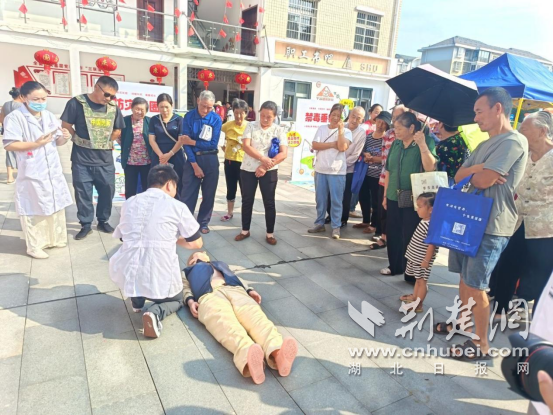 廣場(chǎng)另一側(cè),醫(yī)護(hù)人員鋪開(kāi)模擬人體模型,演示燒傷包扎與心肺復(fù)蘇?!鞍惹鍧崅?,再用紗布從傷口下方往上層層固定,松緊度以能伸入一指為宜;做心肺復(fù)蘇時(shí),按壓深度必須達(dá)5-6厘米,頻率保持每分鐘100-120 次,節(jié)奏就像跟著‘1001、1002’數(shù)數(shù)一樣均勻?!贬t(yī)護(hù)人員一邊說(shuō),一邊用手比劃著關(guān)鍵動(dòng)作。講解完畢,邀請(qǐng)居民實(shí)操,遇到按壓角度偏斜、力度不足的情況,便俯身手把手糾正,耐心調(diào)整姿勢(shì),確保每個(gè)人都能真正掌握正確要領(lǐng)。