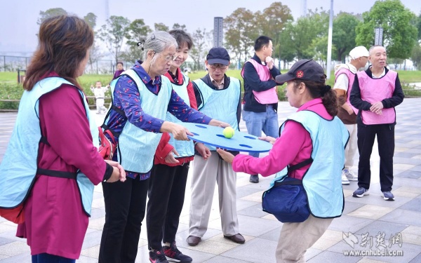 活動(dòng)現(xiàn)場設(shè)置了三個(gè)互動(dòng)游戲區(qū)域,“不倒森林”游戲中,老人們圍成一圈,默契配合轉(zhuǎn)動(dòng)長桿;“四平八穩(wěn)”環(huán)節(jié),大家小心翼翼地操控游戲道具,努力保持小球平衡;“同舟共濟(jì)”時(shí),三人一組相擁站在墊子上協(xié)同挪動(dòng)。這些趣味拓展活動(dòng)不僅鍛煉了老人們的協(xié)調(diào)能力,更在歡聲笑語中增進(jìn)了鄰里情誼。