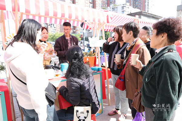 活動設置互動體驗與文藝表演兩大區(qū)域,現(xiàn)場熱鬧非凡?;芋w驗區(qū)的“DIY調飲攤”前,居民們親手調配創(chuàng)意茶飲,在沖泡間感受茶飲的多樣魅力;氛圍打卡點深受年輕居民青睞,大家紛紛拍照留念,并通過社交媒體分享活動盛況,實現(xiàn)線下體驗與線上傳播的有效聯(lián)動。