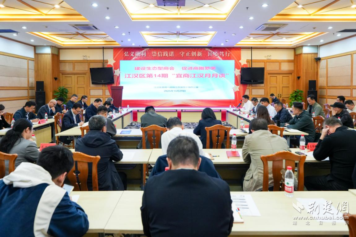 10月29日,江漢區(qū)第14期“宜商江漢月月談”聚焦“建設(shè)生態(tài)型商會(huì),促進(jìn)商圈繁榮”主題,邀請(qǐng)區(qū)內(nèi)重點(diǎn)商會(huì)、商業(yè)企業(yè)與相關(guān)部門代表面對(duì)面交流,圍繞營(yíng)商環(huán)境、政策支持、基礎(chǔ)設(shè)施等關(guān)鍵議題,現(xiàn)場(chǎng)收集意見建議,實(shí)現(xiàn)問題在一線回應(yīng)、共識(shí)在一線凝聚、行動(dòng)在一線落實(shí)。