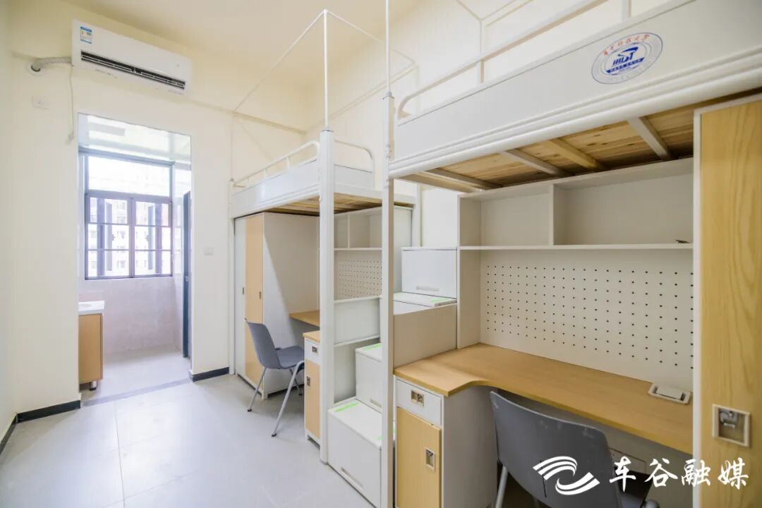 軍山校區(qū)建有7棟學生宿舍樓。北區(qū)的2棟主要面向本科生,以四人間為主。南區(qū)的5棟主要面向研究生,碩士生宿舍為兩人間,博士生宿舍為八人套房。宿舍樓一層為公共空間與服務(wù)樞紐,設(shè)有接待前臺,提供寄存、維修、反饋等服務(wù),設(shè)有多功能學習與活動空間、自習室、研討室、黨團活動室、咨詢室,滿足多種需求。二層及以上是住宿區(qū),電梯直達、功能完善,公共服務(wù)區(qū)配備洗衣機、烘干機、洗鞋機、直飲機。宿舍采用智能門鎖,上床下桌,獨立衛(wèi)浴,多功能學習桌搭配人體工學座椅,為學生提供舒適的學習住宿環(huán)境。