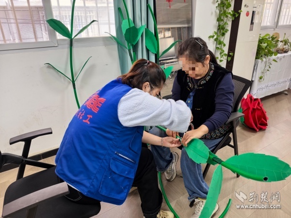這棵“愛之樹”是街道殘聯(lián)聯(lián)合西廠口社區(qū)開展的“杏運(yùn)相伴,玫好家園”殘健融合公共藝術(shù)共創(chuàng)活動(dòng)的成果,轄區(qū)陽光家園學(xué)員、助殘志愿者、居民代表和社區(qū)工作者共同參與,以親手制作的巨型銀杏葉與玫瑰花裝點(diǎn)社區(qū)空間,傳遞“黃鶴樓下是我家”的溫暖。