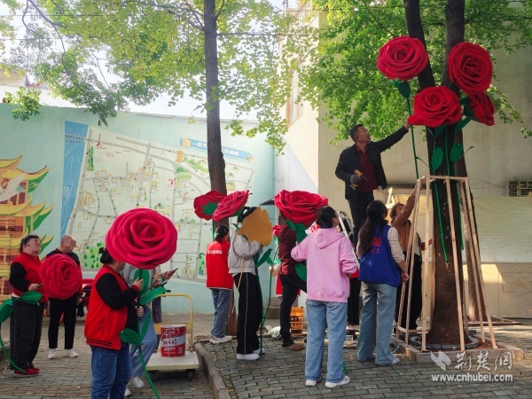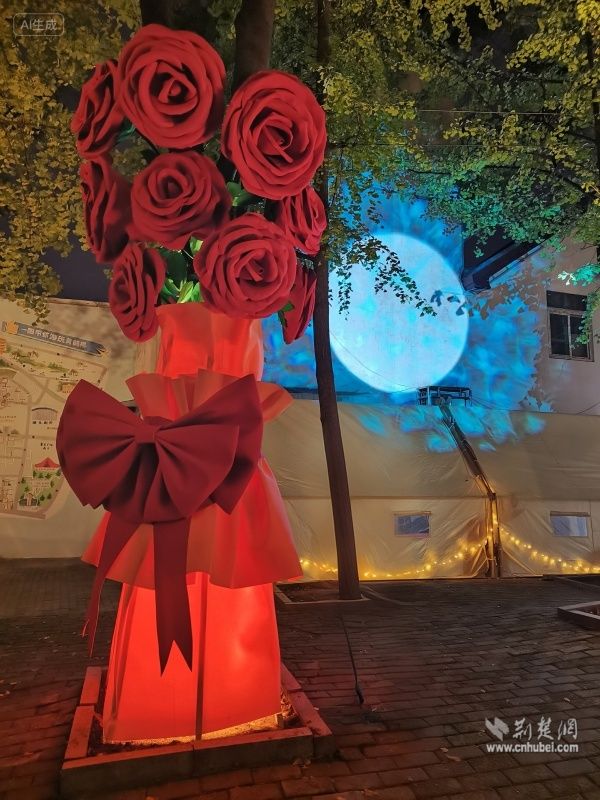 荊楚網(wǎng)(湖北日報(bào)網(wǎng))訊(通訊員 陳曉燕 周佳穎)11月5日,武昌區(qū)黃鶴樓街道后宰門街角一道獨(dú)特的風(fēng)景引人注目,一棵“永不凋零”的“愛之樹”絢麗綻放,樹上盛開的巨型玫瑰花與一旁的月球投影裝置相映成趣,與遠(yuǎn)方的黃鶴樓共同構(gòu)成一幅詩意城市景觀。