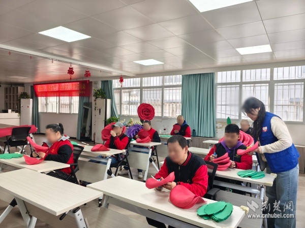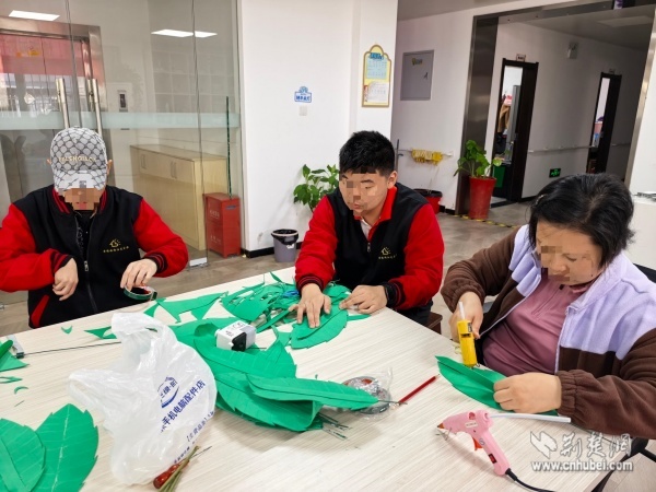 在為期兩周的創(chuàng)作中,陽光家園學(xué)員在志愿者的陪伴下,從設(shè)計(jì)畫圖、精準(zhǔn)剪裁到立體塑形、精細(xì)組裝,系統(tǒng)學(xué)習(xí)并逐步掌握了銀杏葉與玫瑰花的制作技巧?!暗谝淮螀⑴c制作這么大的藝術(shù)作品,沒想到我也能創(chuàng)造出這么美的作品!”一位學(xué)員自豪地展示成果。創(chuàng)作過程中,殘健伙伴分工協(xié)作、各展所長,在默契配合中締結(jié)了深厚情誼。