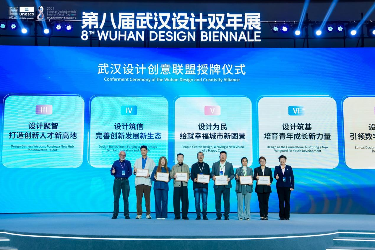 武漢有設(shè)計(jì)相關(guān)專業(yè)高校50余所,設(shè)計(jì)專業(yè)在校學(xué)生近10萬人,設(shè)計(jì)相關(guān)企業(yè)突破1萬家,10余個(gè)設(shè)計(jì)行業(yè)協(xié)會(huì),從業(yè)人員超50萬,形成了強(qiáng)大的“設(shè)計(jì)創(chuàng)意聯(lián)盟”,催生出了集產(chǎn)業(yè)鏈、創(chuàng)新鏈、人才鏈、價(jià)值鏈于一體的融合創(chuàng)新發(fā)展生態(tài)體系。在開幕式的最后,“武漢設(shè)計(jì)創(chuàng)意聯(lián)盟”正式授牌,來自設(shè)計(jì)企業(yè)、行業(yè)協(xié)會(huì)、高校院所和獨(dú)立設(shè)計(jì)師等領(lǐng)域多元設(shè)計(jì)力量代表共同見證。未來,“武漢設(shè)計(jì)創(chuàng)意聯(lián)盟”將奮力實(shí)現(xiàn)設(shè)計(jì)融城,構(gòu)筑協(xié)同發(fā)展新范式;設(shè)計(jì)賦能,激活產(chǎn)業(yè)升級新動(dòng)能;設(shè)計(jì)聚智,打造創(chuàng)新人才新高地;設(shè)計(jì)筑信,完善創(chuàng)新發(fā)展新生態(tài);設(shè)計(jì)為民,繪就幸福城市新圖景;設(shè)計(jì)筑基,培育青年成長新力量;設(shè)計(jì)向善,引領(lǐng)數(shù)字文明新航向;設(shè)計(jì)聯(lián)通,拓展國際交往新空間八大目標(biāo)。
