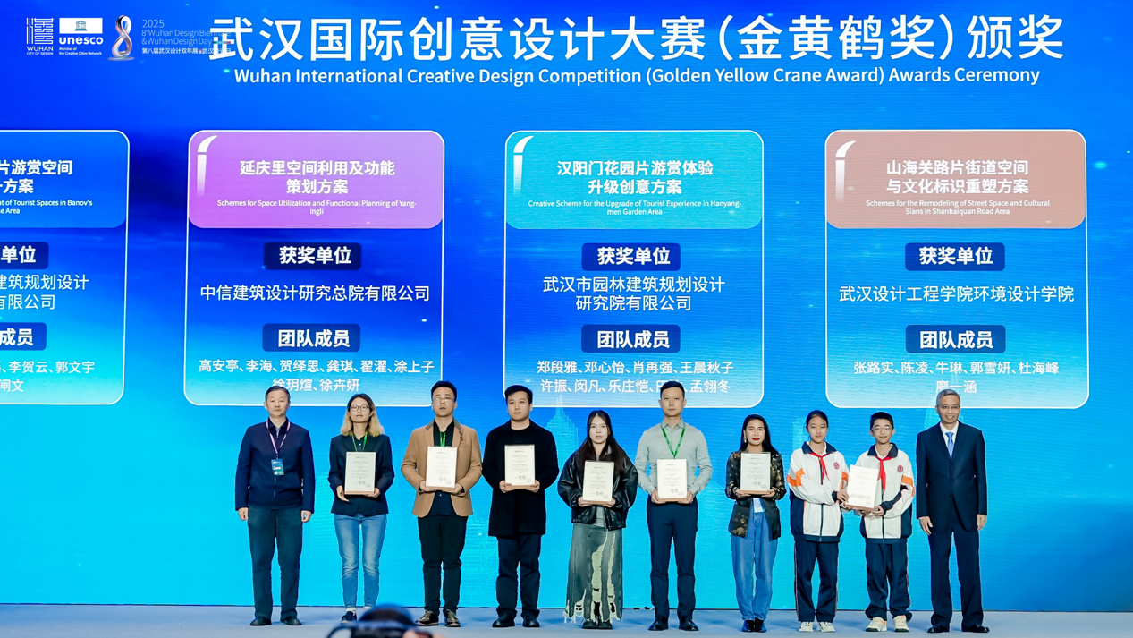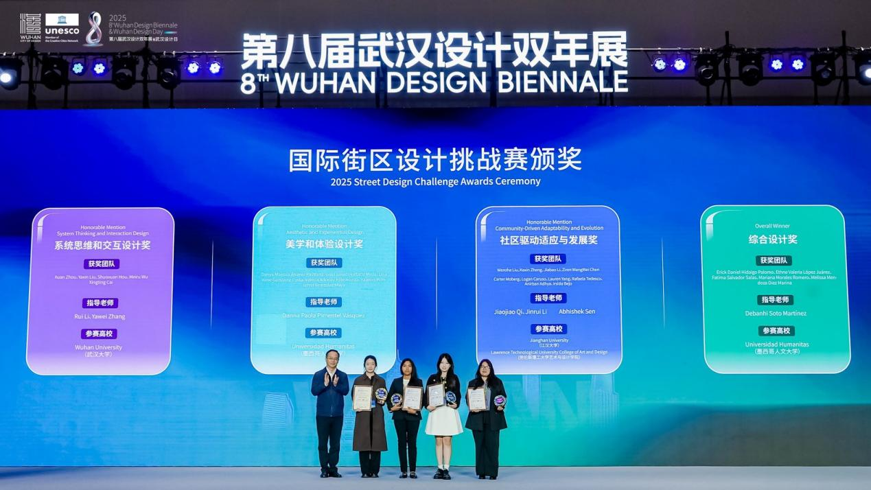 開幕式上,2025年武漢國際創(chuàng)意設(shè)計(jì)大賽(金黃鶴獎(jiǎng))與 2025年國際街區(qū)挑戰(zhàn)賽頒獎(jiǎng)儀式同步舉行。其中,象征武漢設(shè)計(jì)創(chuàng)新探索的“金黃鶴獎(jiǎng)”,今年特意選取黃鶴樓、山海關(guān)路、漢陽門等市民常去、關(guān)注度高、滿滿煙火氣的城市地標(biāo)作為設(shè)計(jì)對象,不限專業(yè)和地域,征集更宜人的更新提升方案?,F(xiàn)場,武漢瑞拓建筑設(shè)計(jì)咨詢有限公司等6個(gè)專業(yè)組一等獎(jiǎng)和最佳組織獎(jiǎng)武漢市七一華源中學(xué)等獲獎(jiǎng)代表接受頒獎(jiǎng)。國際街區(qū)挑戰(zhàn)賽,則是由聯(lián)合國教科文組織設(shè)計(jì)之都城市聯(lián)合舉辦,全球高校團(tuán)隊(duì)共同參與的國際設(shè)計(jì)賽事。經(jīng)過全球30位權(quán)威專家1個(gè)月的精心細(xì)致評審,選出了四個(gè)優(yōu)勝方案?,F(xiàn)場,為交互設(shè)計(jì)獎(jiǎng)獲獎(jiǎng)團(tuán)隊(duì)武漢大學(xué)、美學(xué)設(shè)計(jì)獎(jiǎng)獲獎(jiǎng)團(tuán)隊(duì)墨西哥人文大學(xué)、社區(qū)發(fā)展獎(jiǎng)獲獎(jiǎng)團(tuán)隊(duì)江漢大學(xué)團(tuán)隊(duì)和美國勞倫斯理工大學(xué)團(tuán)隊(duì),以及綜合設(shè)計(jì)獎(jiǎng)獲獎(jiǎng)團(tuán)隊(duì)墨西哥人文大學(xué)頒獎(jiǎng)。