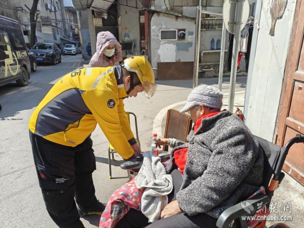 外賣小哥為高齡老人送餐。 通訊員供圖