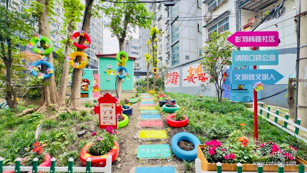 改造過程中,各方力量協(xié)同發(fā)力。物業(yè)負(fù)責(zé)大型樹木修剪,志愿者團隊深入綠地清理雜草垃圾,累計清運廢棄物數(shù)十袋;施工人員開展土地平整,精心栽種月季、杜鵑、迷迭香等適應(yīng)性強的觀賞植物,搭配彩繪輪胎裝飾,使綠化覆蓋率達到80%以上。最引人注目的是,花園創(chuàng)新融入消防主題元素——消防栓造型景觀、滅火器樣式指示牌等設(shè)施點綴其間,讓居民在休閑漫步中自然接受安全教育。