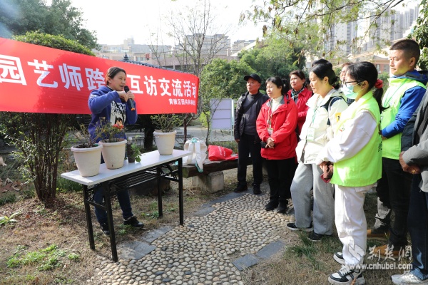 當天,社區(qū)園藝師跨區(qū)互訪交流活動在沙港社區(qū)舉行,來自全市各區(qū)的28名社區(qū)園藝師與沙港社區(qū)志愿者,通過實地探訪、動手實操、互動分享,圍繞社區(qū)花墻打造、秋冬季病蟲害防治等話題展開深度交流,在互學互鑒中共同提升園藝服務水平。