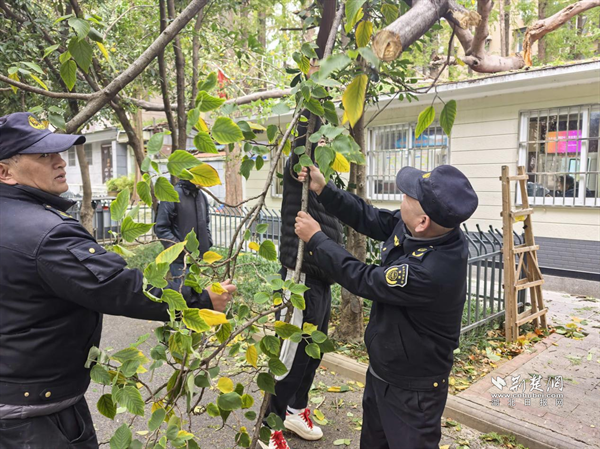 執(zhí)法中心工作人員清理壓倒的樹杈。 通訊員供圖