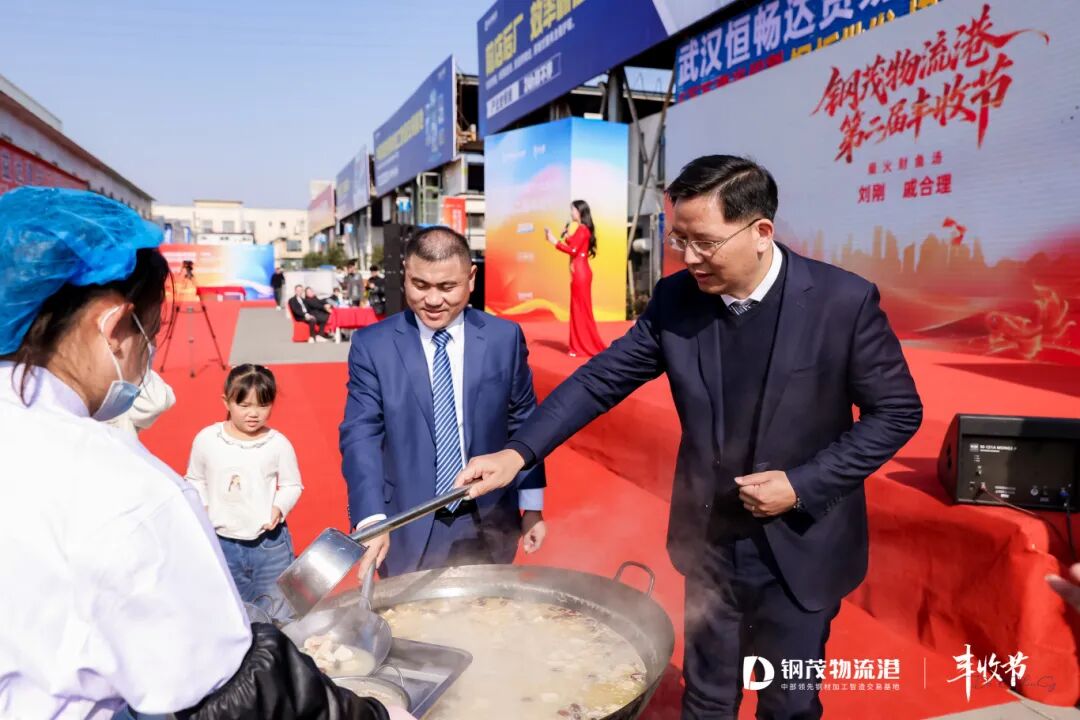 發(fā)布會結(jié)束后,第二屆“豐收節(jié)”溫馨開啟。獨具地方特色的宴席氛圍,展現(xiàn)了鋼茂物流港與商戶之間的深厚情誼。德成控股集團董事長徐小波致以開場誠摯歡迎,德成控股集團執(zhí)行總裁劉剛和鋼茂物流港總經(jīng)理戚合理分送寓意吉祥的財魚湯,將現(xiàn)場氣氛推向高潮。精彩紛呈的文藝表演,更增添了喜慶祥和的節(jié)日氛圍。