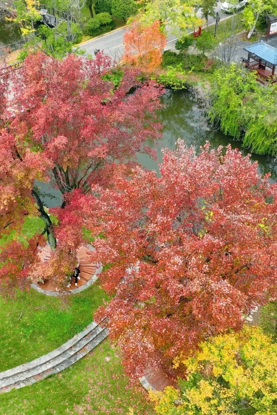 楓葉林沿著蜿蜒的棧道緩緩鋪開。你可以散步,也可以乘上那艘慢悠悠的畫舫船。當船行至湖心,兩岸的紅葉倒映在碧水里,那個瞬間,你會覺得整個秋天都在為你綻放。