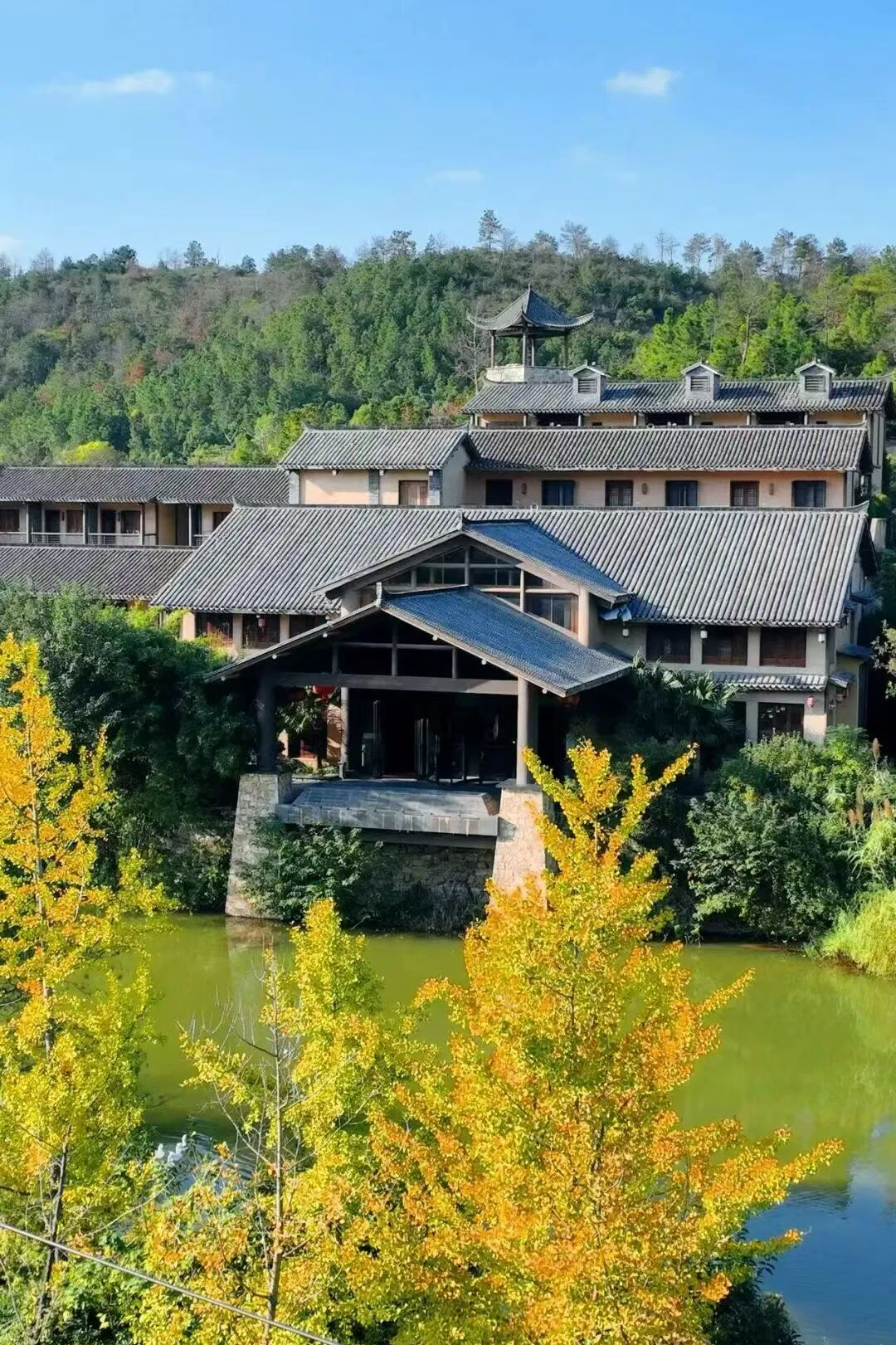 3. 梯田觀景處以銀杏與烏桕色彩為前景,遠山為背景,呈現(xiàn)層次豐富的秋色。