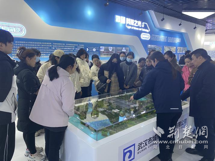 走進(jìn)北湖污水處理廠,現(xiàn)代化設(shè)施井然有序。水流穿管而過,光伏板鋪展在廠區(qū)上方。廠黨支部副書記夏可向?qū)W員們介紹了項(xiàng)目建設(shè)與運(yùn)營(yíng)情況。這一工程是武漢“四水共治”和“長(zhǎng)江大保護(hù)”的重要支點(diǎn),具備日處理80萬(wàn)噸污水、服務(wù)超過240萬(wàn)人的能力。通過“光伏+水務(wù)”“污水再生利用”等模式,北湖廠展示了生態(tài)文明建設(shè)的創(chuàng)新路徑。