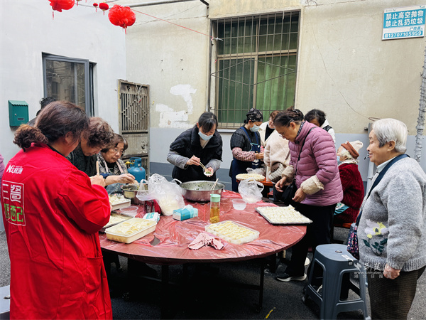 活動最暖環(huán)節(jié),當屬跨小區(qū)的鄰里美食互動。工程營小區(qū)鄰里客廳熬制的排骨藕湯香氣撲鼻,九中宿舍小區(qū)鄰里客廳內(nèi),居民正合力包制團圓餃子。兩小區(qū)居民齊聚一堂,熱湯配餃子,一場暖心家宴在嘮家常的溫馨氛圍中開席,詮釋了“左鄰右舍齊歡聚,共筑復興時光里”的活動主題。