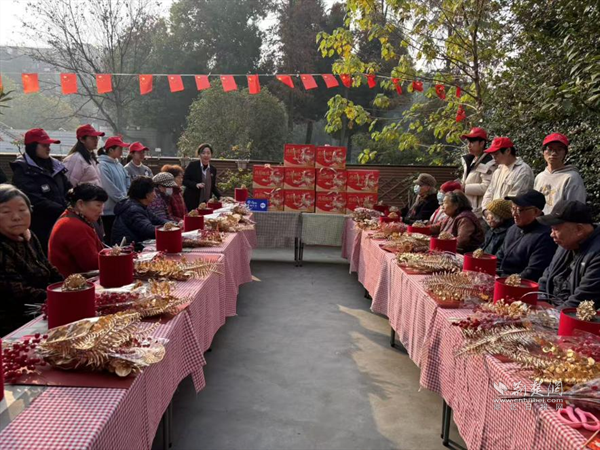 為鍛煉老人動(dòng)手能力與思維敏捷度,活動(dòng)設(shè)趣味手工環(huán)節(jié)。老人們?cè)谏鐓^(qū)工作人員與武大學(xué)生志愿者指導(dǎo)下,將干花、仿真花細(xì)心插進(jìn)裝飾桶。現(xiàn)場(chǎng)笑聲不斷,老人們舉著作品展示、合影,既收獲成就感,又拉近鄰里距離,傳遞社區(qū)溫情。