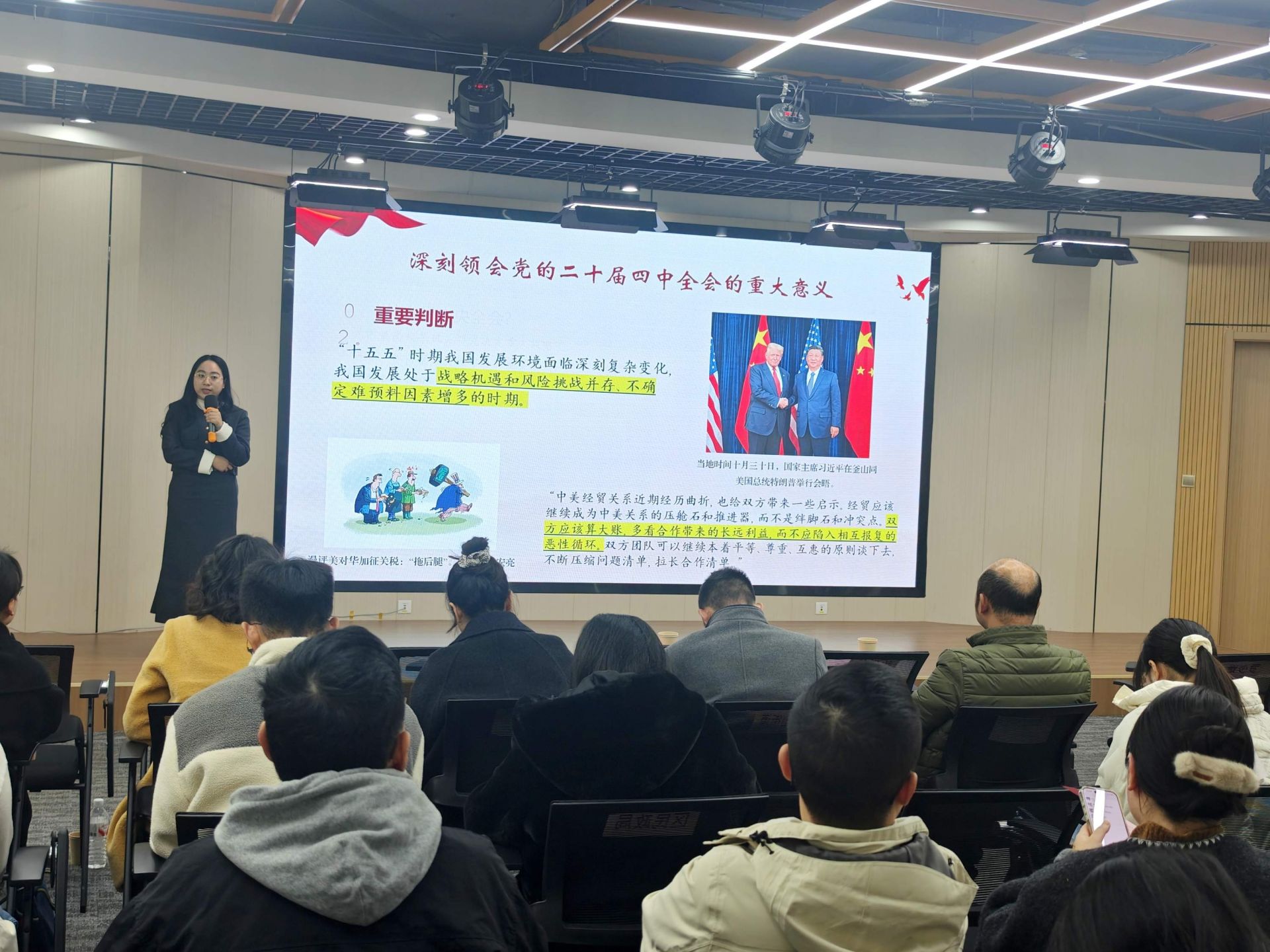 隨后,武漢市委黨校行政管理教研部教師、武漢市“青聲紅語”青年宣講隊(duì)成員吳靜怡,圍繞全會的重大意義與“十五五”時期的目標(biāo)任務(wù)作了專題輔導(dǎo)。她勉勵在場青年將個人理想融入國家發(fā)展大局,在科技創(chuàng)新、鄉(xiāng)村振興、基層治理等一線主戰(zhàn)場挺膺擔(dān)當(dāng),以實(shí)干實(shí)績?yōu)橹袊浆F(xiàn)代化貢獻(xiàn)青春力量。