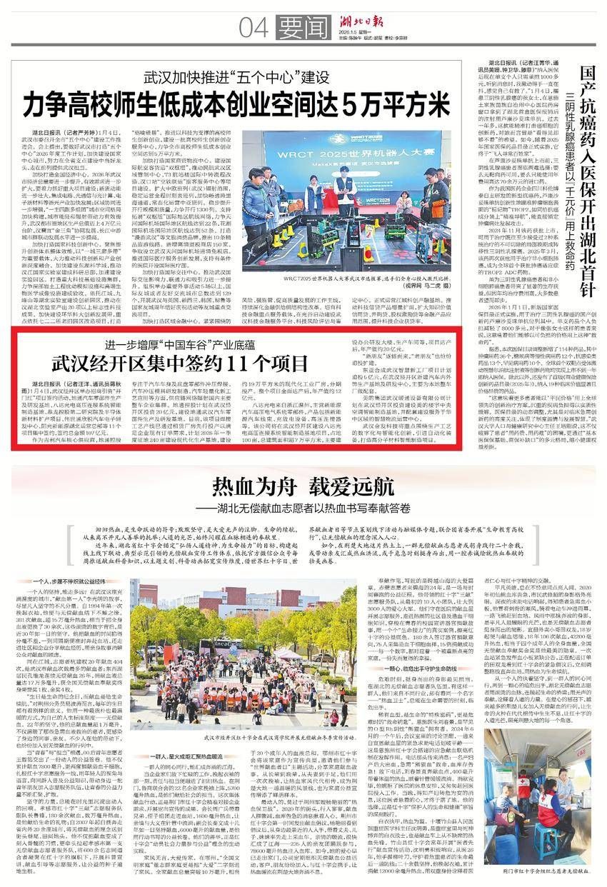 1月5日,湖北日報(bào)要聞版報(bào)道:進(jìn)一步增厚“中國車谷”產(chǎn)業(yè)底蘊(yùn) 武漢經(jīng)開區(qū)集中簽約11個項(xiàng)目