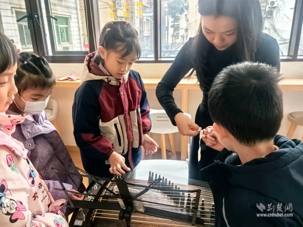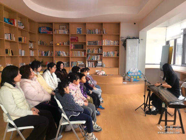 當(dāng)天上午,黃鶴書(shū)房?jī)?nèi)箏聲潺潺,以“琴潤(rùn)書(shū)香遇知音”為主題的古箏生活美學(xué)雅集在這里上演。二十余位居民齊聚一堂,在專(zhuān)業(yè)老師的帶領(lǐng)下,共同走進(jìn)古箏的悠遠(yuǎn)世界。