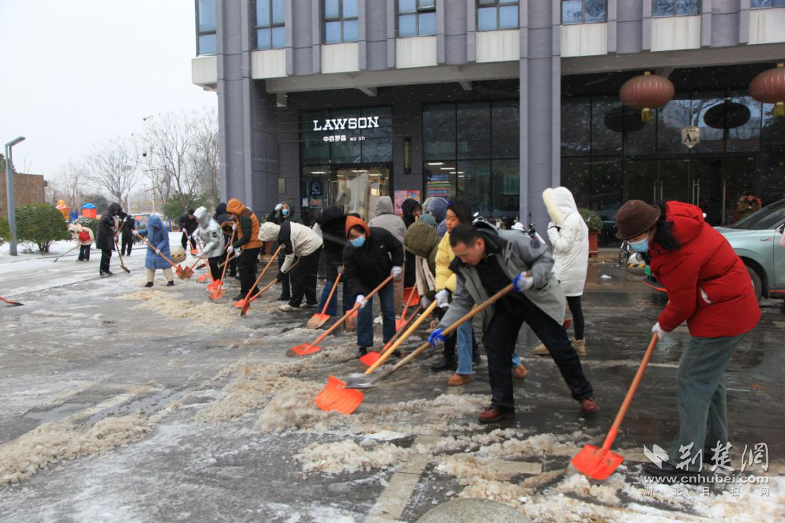 在洪山獅子山社區(qū)、東湖高新區(qū)豹澥街道、漢陽區(qū)江堤及四新街道、東湖風景區(qū)各村場,物業(yè)、居民志愿者在市民在確保安全的前提下,就近參與掃雪鏟冰、鋪設草墊,對居民小區(qū)出入口、單元門棟、地下車庫坡道等關(guān)鍵區(qū)域積雪積冰進行清理,對轄區(qū)幼兒園、小學、初中等學校周邊路段開展融雪除冰,確保居民出行暢通,共同維護美麗武漢。